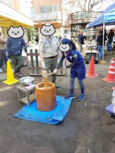 横浜第58団さんと一緒に餅つきをしました。 大変でしたが、皆で美味しく頂きました。ありがとうございました。
